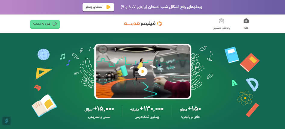 In "Filimo School", Persian Literature, science, mathematics, and Arabic lessons for first to ninth grades are covered by top teachers, using modern educational methods and with an "edutainment" approach. To teach conceptual and deep instruction, animations, games, and other creative tools are used in the videos of this service.