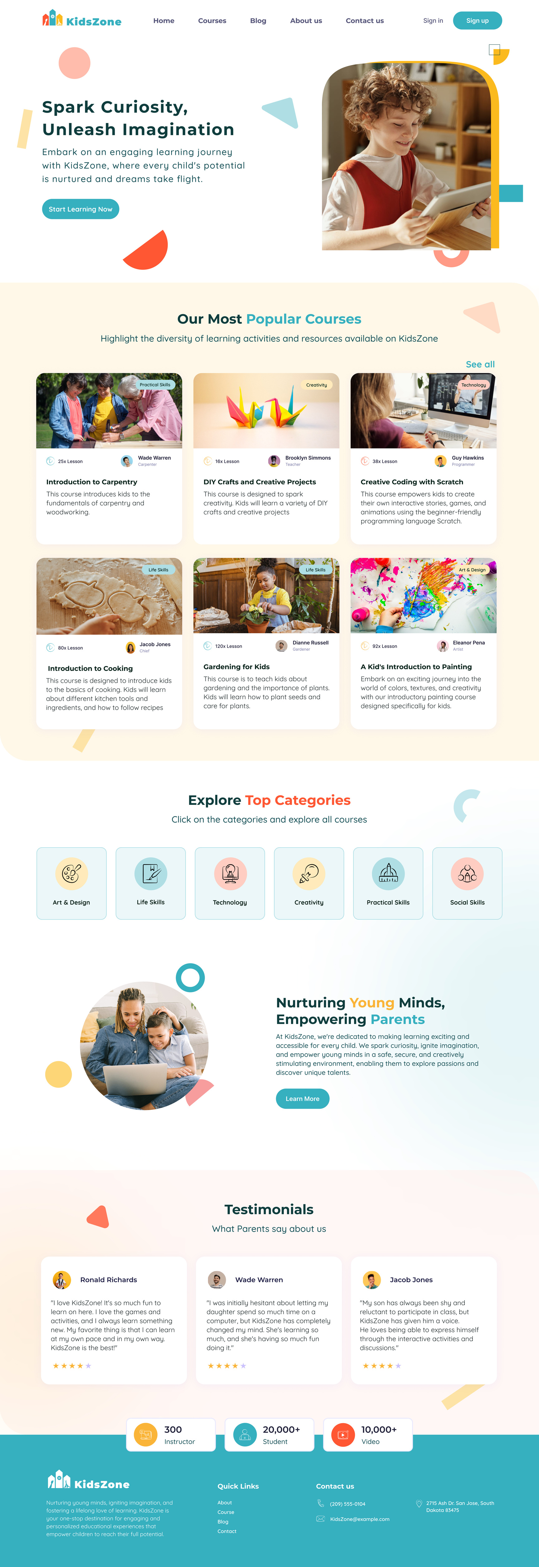 KidsZone is an innovative online platform designed to revolutionize the educational experience for children aged 4 to 12. We aimed to create a digital haven bursting with vibrant colors, captivating sounds, and an endless array of educational adventures tailored specifically to ignite curiosity and nurture the intellectual growth of young minds.